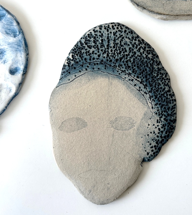 Kunstwerk Relief Face A uit de serie Skins. Van kunstenares Maja Bunthof. A 'One of a kind' ! Van elk gezicht is er maar 1 van gemaakt! Bij het uitrollen van klei tot een dunne plaat, verschijnt soms een vorm die de kunstenares doet denken aan een gezicht. De klei wordt een prachtige huid. Het is te verleidelijk om deze niet verder te volgen. Langzaam laat ze ogen, mond en soms een neus ontstaan, waarbij ze materialen als stukjes stof gebruik om zachte afdrukken in de klei achter te laten. Daarna komt de kleur. Door pigment op sommige plekken voorzichtig weg te halen en het achter te laten in de dieperliggende delen, krijgt het gezicht zijn eigen huid/expressie, alsof het zachtjes tot leven komt. Elke nuance en schaduw vertelt een subtiel verhaal, gevangen in de tijdloze taal van klei en kleur. Op hoge temperatuur gebakken waardoor een prachtig solide keramisch kunstwerk onstaat. Mooi solo maar ook bijzonder met 2 of meer gezichten bijelkaar. Makkelijk op te hangen aan de wand door een ophanghaakje aan de achterzijde. Afmeting; 23 cm. hoog x 16 cm. breed. Levertijd 1 tot 3 werkdagen.
