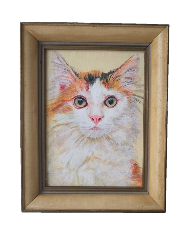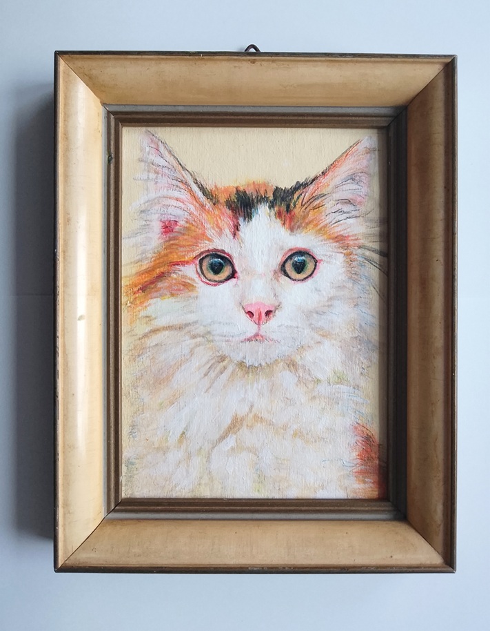 Pussycat kunstwerk. De schilderijen van artist Liesbet Milort brengen je terug naar de natuur. Haar kunstwerken geven de dieren en de natuur die Nederland rijk is een krachtige en bijzondere uitstraling. Milort combineert prachtige verfkleuren met een fantastisch gevoel voor licht en schaduw werking, waardoor haar werk een magisch realistische dimensie krijgt. Deze unieke mix en kleuren zorgt voor een intieme en betoverende beleving van de natuur in haar schilderijen. Materiaal; acryl en krijt in vintage lijst. Afmetingen: 13,7 x 17,6 cm. Levertijd: 1 a 3 werkdagen.