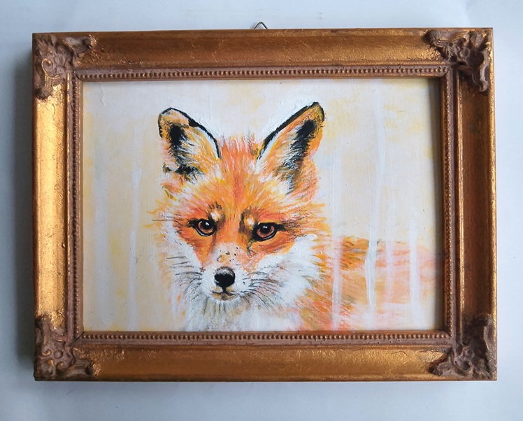 Vosje kunstwerk. De schilderijen van artist Liesbet Milort brengen je terug naar de natuur. Haar kunstwerken geven de dieren en de natuur die Nederland rijk is een krachtige en bijzondere uitstraling. Milort combineert prachtige verfkleuren met een fantastisch gevoel voor licht en schaduw werking, waardoor haar werk een magisch realistische dimensie krijgt. Deze unieke mix en kleuren zorgt voor een intieme en betoverende beleving van de natuur in haar schilderijen. Materiaal; acryl en krijt in vintage lijst. Afmetingen: 21 x 16 cm. Levertijd: 1 a 3 werkdagen.