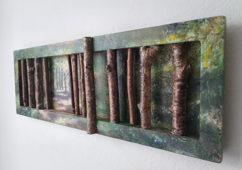Walk in the woods kunstwerk. De schilderijen van artist Liesbet Milort brengen je terug naar de natuur. Haar kunstwerken geven de dieren en de natuur die Nederland rijk is een krachtige en bijzondere uitstraling. Milort combineert prachtige verfkleuren met een fantastisch gevoel voor licht en schaduw werking, waardoor haar werk een magisch realistische dimensie krijgt. Deze unieke mix en kleuren zorgt voor een intieme en betoverende beleving van de natuur in haar schilderijen. Materiaal; mixed media acryl en krijt in vintage lijst. afgewerkt met een glanslaag. Afmetingen: 40 x 14 x 31,5 cm. Levertijd: 1 a 3 werkdagen.